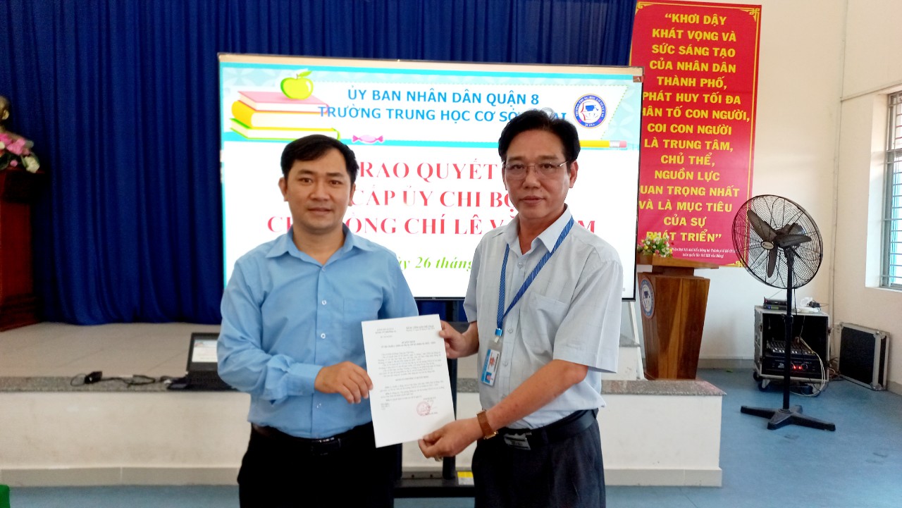 Ngày 9/3/2024, thay mặt Chi bộ trường THCS Lê Lai, đồng chí Nguyễn Hoàng Dũng - Bí thư chi bộ, đã trao Quyết định số 136-NQ/ĐU ngày 06 tháng 3 năm 2024 của Đảng ủy Phường 15 (Quận 8) về việc chuẩn y nhân sự cấp ủy chi bộ nhiệm kì 2022 - 2025 cho đồng chí Lê Văn Năm, Phó hiệu trưởng. Đến tham dự buổi trao quyết định gồm có: các đồng chí cấp ủy chi bộ, đảng viên và các đồng chí Đoàn viên Đoàn TNCS Hồ Chí Minh của trường THCS Lê Lai.